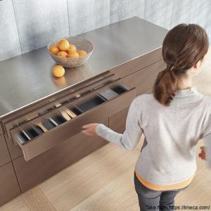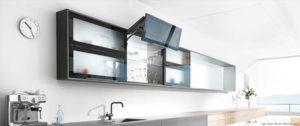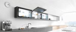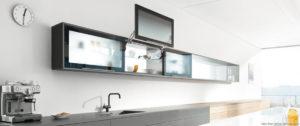 These lift systems open doors parallel to the cabinet. Ideal solution for kitchens with high ceilings.